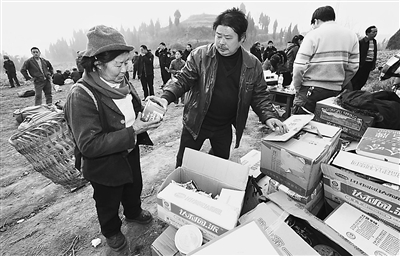 据统计,此次震灾主要发生在安居区的猛虎村、石佛村、八角村、老木桠村等四个村。目前1人死亡,11人受伤。灾情发生后,卫生部门的救援力量立即到达现场,所有伤员都进入市中心医院等医疗机构进行救治。图为群众领取救援物资。钟敏 摄