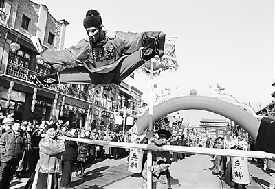 1月31日,“我的北京,我的家”2010年北京春节系列文化活动启动仪式在前门大街举行。来自全市的各群众表演团队从正阳门箭楼南侧出发,边行进边表演,旱船、舞龙、耍狮、中幡、杠箱会、大秧歌等民间民俗传统表演技艺在前门一一展示。