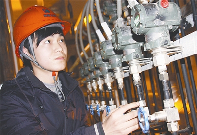 1月30日,江西省鄱阳县凯迪生物质能电厂的一名员工在检测发电设备的运行性能。