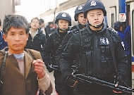 蚌埠铁路公安处为保证春运安全,特警在进行实战演练。李健 摄