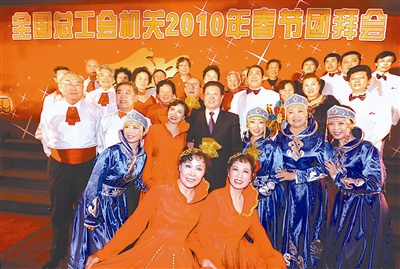 2月5日下午,全总机关举行2010年春节团拜会。中共中央政治局委员、全国人大常委会副委员长、中华全国总工会主席王兆国与全总机关和直属单位的干部职工以及全总离退休老同志欢聚一堂、共迎新春。 本报记者 张宪 摄