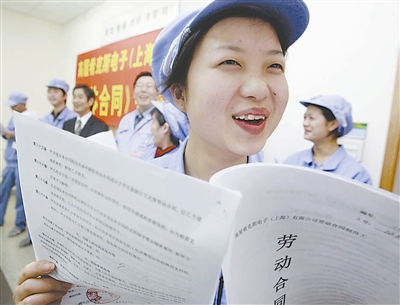 日前,来自四川雅安的陈丽霞高兴地在上海市嘉定工业区一家制造企业签订了长年劳动合同。张海峰 摄