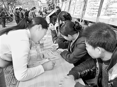 “现在家乡的企业越来越多了,我愿意回家乡就业。”一位返乡农民工在务工招聘会上高兴地说。2月8日,福建省连城县总工会联合有关部门利用春节前夕大批外出务工人员回家过年的契机,在街心广场举办首场“春风行动”招聘会,组织该县22家用工企业提供就业岗位1500多个。本报记者 吴铎思 通讯员 柯加炜 摄