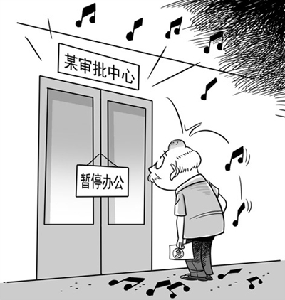 行政审批中心把相关单位集中在一块办公,目的就是便民,使办事者少跑路,提高办事效率。如果是因为唱歌和开会而上演“空城计”,让来办事的百姓白跑一趟,实在有些说不过去。啥事是不能耽搁的,啥事是可以协调的,有必要分清楚。