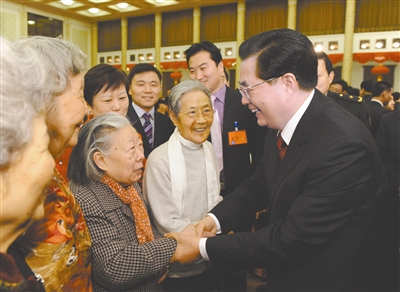 团拜会上,胡锦涛等中央领导同志与大家亲切握手,互致新春问候。