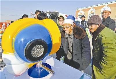 近日,宁夏银川市永宁县“迎新春、三下乡”活动在该县闽宁镇启动。科技、卫生、文化、农业等部门的“三下乡”小分队在现场开展了各项服务、宣传工作。图为闽宁镇农民在“三下乡”活动启动仪式上观看科教仪器。 新华社记者 王鹏 摄