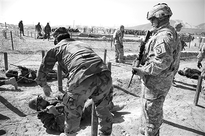 2月17日,在阿富汗首都喀布尔东郊训练中心,美国陆军第十山地师军人协助阿政府军训练。新华社记者 张宁 摄