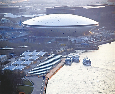 位于世博园区核心地带的,是园区文化演艺6个室内场地、26个室外场地中最为核心的世博演艺中心。这座造型呈飞碟状的建筑,是国内首个容量可变的大型室内演艺场馆,也是上海世博最重要的永久性场馆之一。