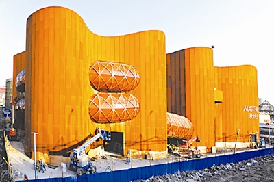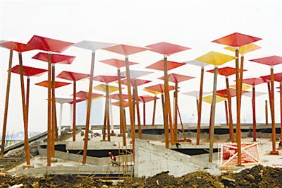 再来看看西班牙的“藤条篮子”建筑。这座由不同质地、颜色各异的8524个藤条板,通过钢结构支架“编织”成的12000平方米“大篮子”,线条呈流线型。阳光将透过藤条的缝隙,洒在展馆的内部。运用书法艺术组成一个个古老的中国文字,外墙将呈现出一首中国诗歌。