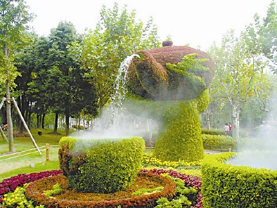 出了水幕太阳能建筑,太阳渐渐升到了头顶,是不是有点热呢?骑着自行车进“活水公园”吧,在这个水的世界里,会觉得一下子凉爽许多。