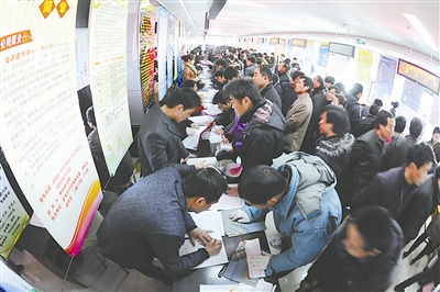 春节过后,部分省区返乡农民工和城镇人员在招聘会上寻找适合自己的工作岗位。