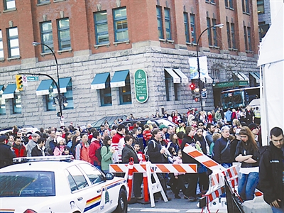 温哥华市中心人潮涌动。 本报特派记者 宋澎摄