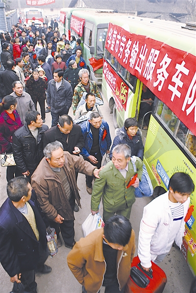 2月23日,四川省华蓥市明月镇农民准备搭乘“爱心客车”前往广东打工。