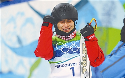 2月24日,中国选手李妮娜在得知第二跳成绩后激动不已。当日,中国选手李妮娜在温哥华冬奥会自由式滑雪女子空中技巧的角逐中,以总分207.23的成绩获得亚军。 新华社记者 徐家军摄