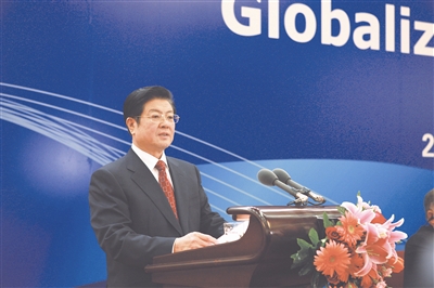 2月25日,王兆国在“2010’经济全球化与工会”国际论坛上发表重要讲话。 李奉明 摄
