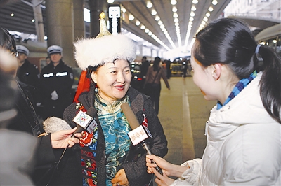 3月1日7时20分,来自内蒙古自治区的全国政协委员乘坐列车抵达北京西站,这是首批抵京参加全国政协十一届三次会议的京外委员。(相关报道见今日第3版)