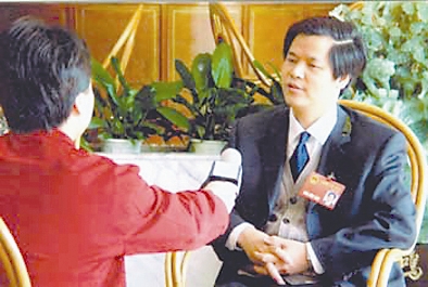 图为郑功成就《社会保险法》的立法进程接受媒体采访。