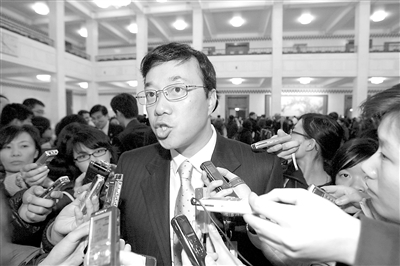 3月5日中午,刚刚参加完第十一届全国人民代表大会第三次会议开幕式的邓中翰代表就被记者团团围住,他希望国家可以制定一部《自主创新法》,将针对自主创新的政府税收优惠,政府采购,知识产权等制度纳入法制化轨道。本报记者 杨登峰 摄