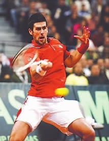 3月7日,塞尔维亚队选手焦科维奇在比赛中回球。当日,在戴维斯杯世界组首轮比赛中,塞尔维亚队以3比2战胜美国队,晋级八强。新华社发/马克·鲁佩纳 摄
