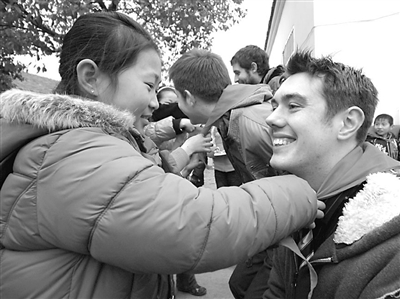 3月8日,合肥一家英语俱乐部的3名外教大卫、卡尔和肖恩在当地教育部门的牵线下,来到合肥市南岗镇侯店小学,向学校的农民工子弟赠送书本、文具等礼物,并为他们上了一堂生动的英语课。 新华社发 (虞俊杰 摄)