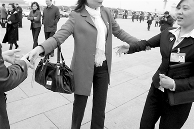 3月11日下午,在天安门广场,准备去人民大会堂参加会议的胡小燕被同团的关菊代表拦住,一定要一起合张影,作为教师的关菊说,她的学生很崇拜胡小燕,希望胡小燕能给他们签个名。