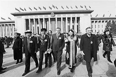 3月13日上午,中国人民政治协商会议第十一届全国委员会第三次会议在北京人民大会堂闭幕。这是闭幕后委员们走出人民大会堂会场。 本报记者 许之丰 摄