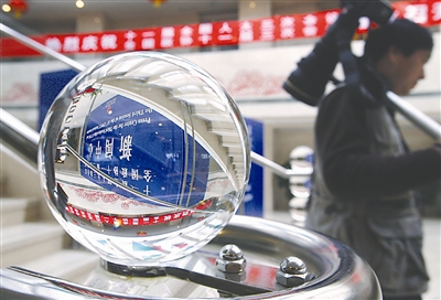 3月13日,在梅地亚中心扶梯口的水晶球旁,一位摄影记者结束采访后扛着镜头离去。当天这里举行了两场采访活动。今年两会,全国人大共举办了20余场集体采访、在线交流和新闻发布活动,而在梅地亚新闻中心就举办了16场,创近年之最。舆论称两会是“透明两会”。本报记者 杨登峰 摄
