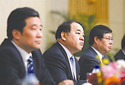3月13日,十一届全国人大三次会议新闻中心举行主题为“再制造与汽车产业的可持续发展”的集体采访。玉林柴油机集团公司董事长晏平、中国重型汽车集团公司董事长马纯济、陕西法士特集团公司董事长李大开(从左至右)三位代表出席集体采访并回答了记者提问。本报记者 杨登峰 摄