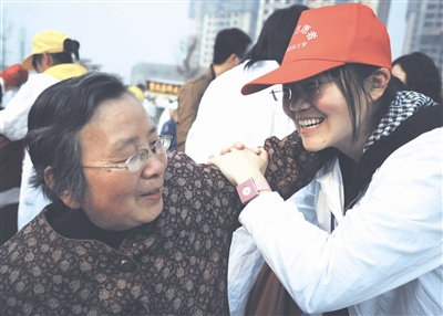 3月20日,一位中医学院的大学生在为费兴珍老人进行中医推拿按摩。
