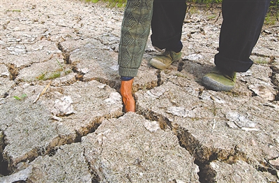 3月21日,武隆县鱼光村龟裂土地的深度可以容纳村民的一只手。