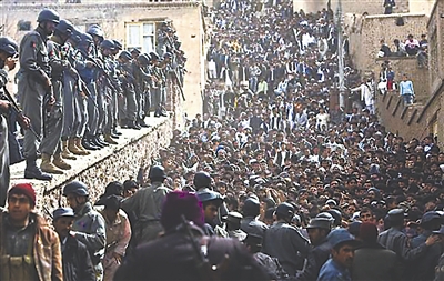 3月21日是阿富汗新年。阿富汗全国各地都举行新年聚会,饱受恐怖袭击之苦的喀布尔市民也纷纷走上街头,欢庆这一传统节日。图为在喀布尔西郊一处圣殿外挤满了人群准备进入圣殿,有大批阿富汗军警在维持秩序。吉平 供图