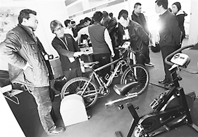 在第二届中国国际新能源暨节能环保展览会上,一家厂商展示兼具健身与发电功能的自行车。它通过与发电机和蓄电池连接,将运动中产生的能量转化为电能储存起来,供家用电器和照明设备使用。