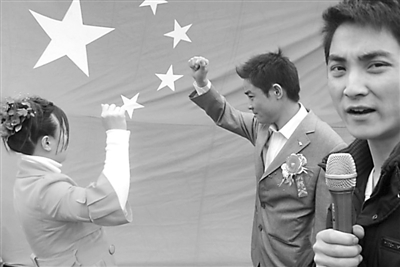 3月23日,重庆能源集团永川煤矿工会为该矿通风队职工蒋波在庄严的国旗下举办了婚礼。新娘张燕表示,将全力做好丈夫的后勤服务工作,让他以饱满的精神状态投入到安全生产工作中,为矿井的和谐发展作出积极贡献。通讯员 赵景权 吴明权 摄