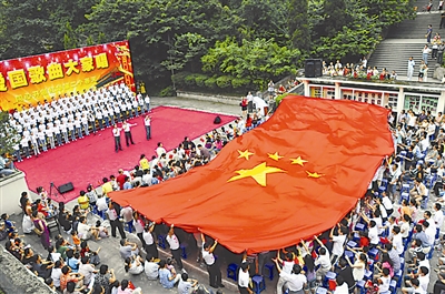 图为814厂举办的“爱国歌曲大家唱”文艺节目。王敦建 摄