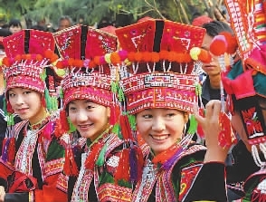 上图是身着节日盛装的少数民族姑娘。