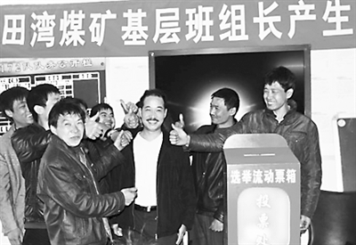 3月23日下午,重庆能源集团新田湾煤矿掘进队职工罗庆怀、王进良在队里举行的公推班组长直选中一路领先,因得票最多而分别当选为一班的正副班长。在此之前,该队一直沿用班组长任命制,有的班组长因难得到员工认同而无法开展工作。此次直选活动有6名候选人,经过竞职演讲、员工无记名投票后,票数最多者胜出。曹永龙 摄