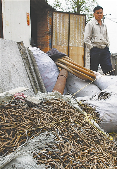 3月29日,南昌,院子里成堆的发霉筷子。
