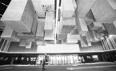 3月30日,工人正在“东方足迹”核心展区内施工。当日,上海世博会永久性标志建筑之一——中国国家馆内部各展区已进入装饰布展的收尾阶段。 新华社记者 裴鑫摄