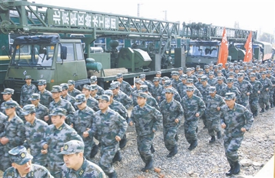 4月2日,北京军区给水工程团官兵抵达昆明后集合。