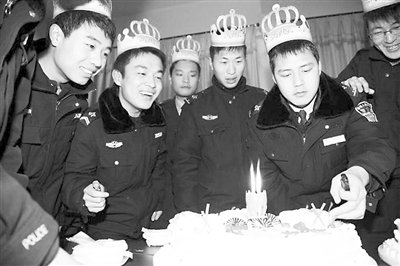 淮北矿业刘店煤矿武保科治保班给10名警员集体过生日,这让10名员工感到温馨和有面子。 吕 刚 摄