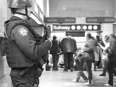 3月29日,警察在美国纽约大中央地铁车站执勤。在俄罗斯莫斯科地铁站29日遭连环爆炸袭击后,纽约警方在地铁主要站点也加强了警戒。 新华社发 吴凯翔 摄