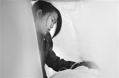 在湖南浏阳市人民医院病房里,王茂华的妻子谭长华轻声唱着催眠曲来减轻丈夫的痛苦(3月29日摄)。
