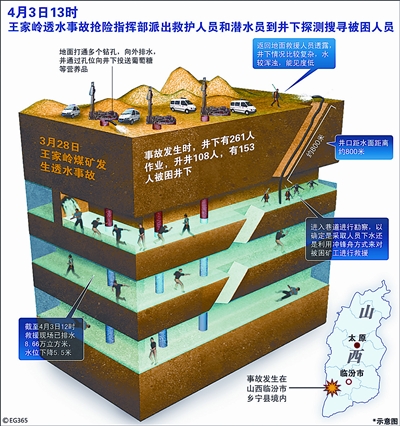 3月28日,山西王家岭煤矿发生透水事故。井下有153人被困。
