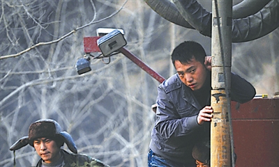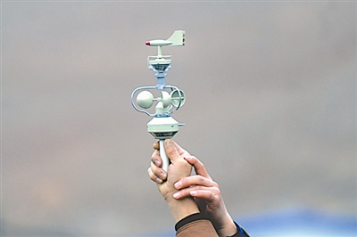 图为救援现场,气象专家在测风向,以准确估计未来的天气状况,为营救提供气象参考。杨杰 摄