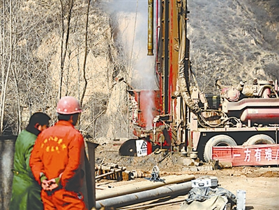 3月29日,地面打钻成功。当晚8时许,救援现场4根水泵开始抽水。