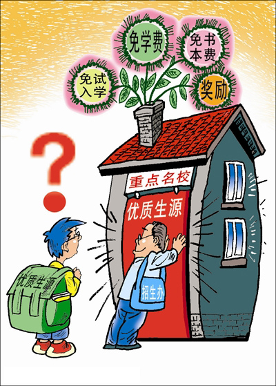 从中央到地方都三令五申推进素质教育,希望逐渐走出片面追求升学率的应试教育怪圈。刚刚颁布的《国家中长期教育改革和发展规划纲要》描绘了推进教育公平的宏伟蓝图,但是生源大战的残酷现实把孩子们的公平教育梦想击打得粉碎。在现行教育体制下,教育资源分配不均衡、人才选拔机制存在弊端,一定程度上为应试教育与优质生源争夺战提供了生存空间。但是,“生源大战”是否真的无药可救呢?实际上,学校热衷于搞“生源大战”的主要目的,说到底,就是为了提高升学率,扩大办学影响,增加学校吸引力,从而谋取经济利益。“生源大战”白热化的根源一方面在于教育评价手段单一、机制死板,给学校造成了潜在的升学压力;另一方面,部分学校的利益观、价值观失范,教育行政部门监管不严或者政策底气不足。