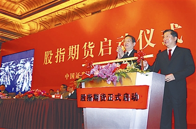 4月8日,股指期货上市启动仪式在上海举行,这意味着股指期货正式上市已进入最后的倒计时。首批4个沪深300的股指期货合约将在4月16日正式挂牌交易。新华社记者 裴鑫摄