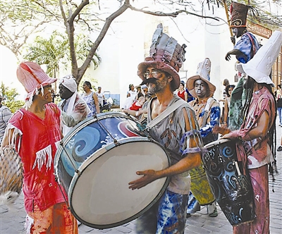 第15届国际城市舞蹈节7日在古巴首都哈瓦那开幕,图为4月7日,世界各地的艺术家们为当地居民和外国游客展示各国的风情舞蹈。新华社发 (华金·埃尔南德斯 摄)