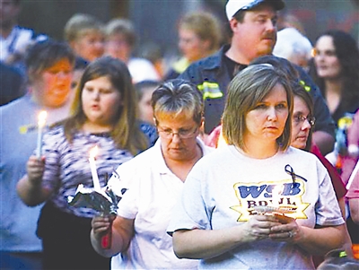 美国西弗吉尼亚州一处煤矿4月5日发生爆炸,造成至少25人死亡4人失踪。这是美国自1984年以来发生的最严重矿难事故。图为7日在矿井外,矿工家属点燃蜡烛悼念遇难矿工。谢涛 供图