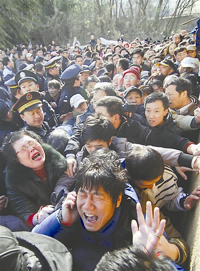 4月13日,山东青岛,拆迁户抢号场面“惨烈”,排队者被挤得失声大叫。
